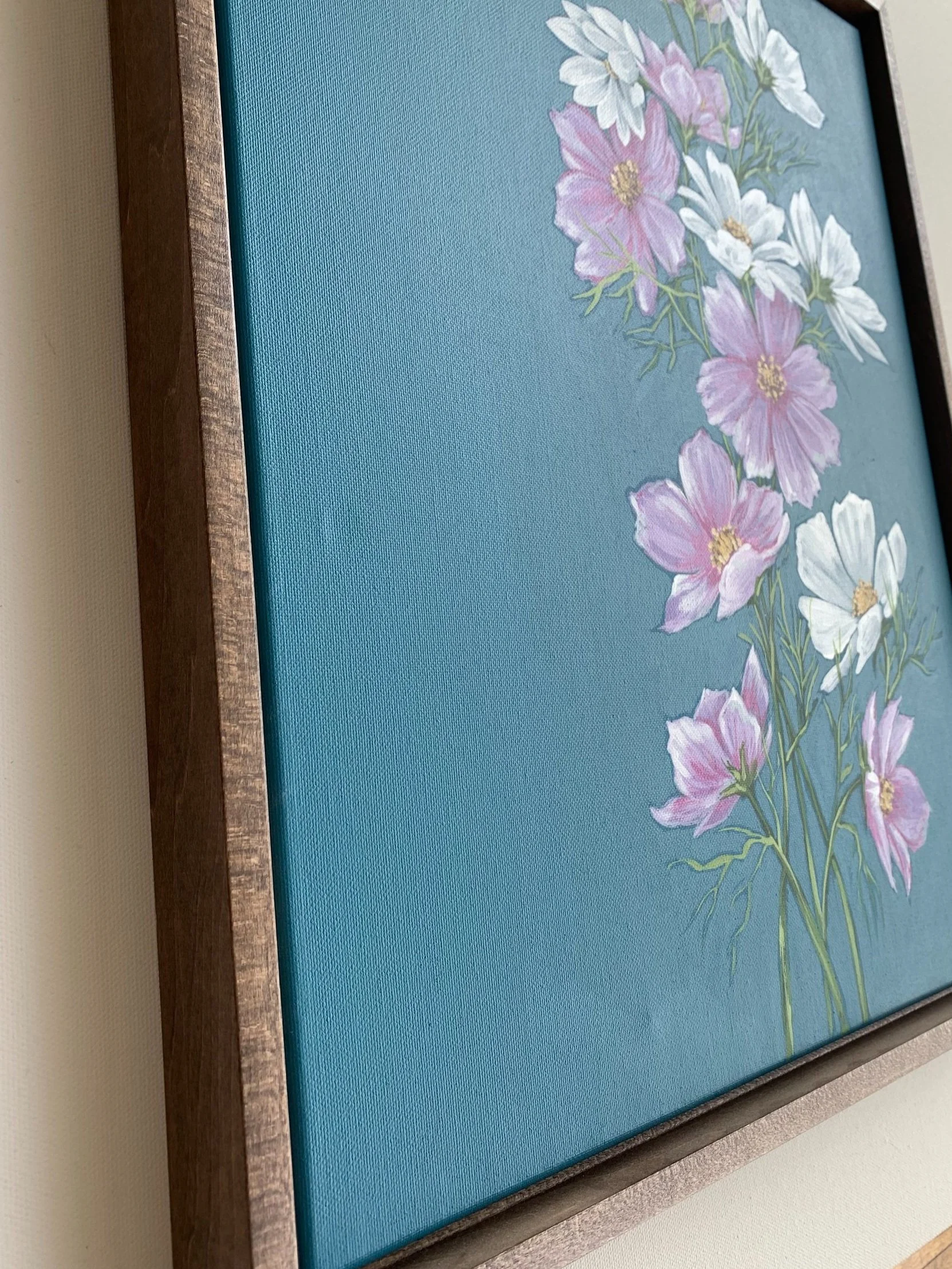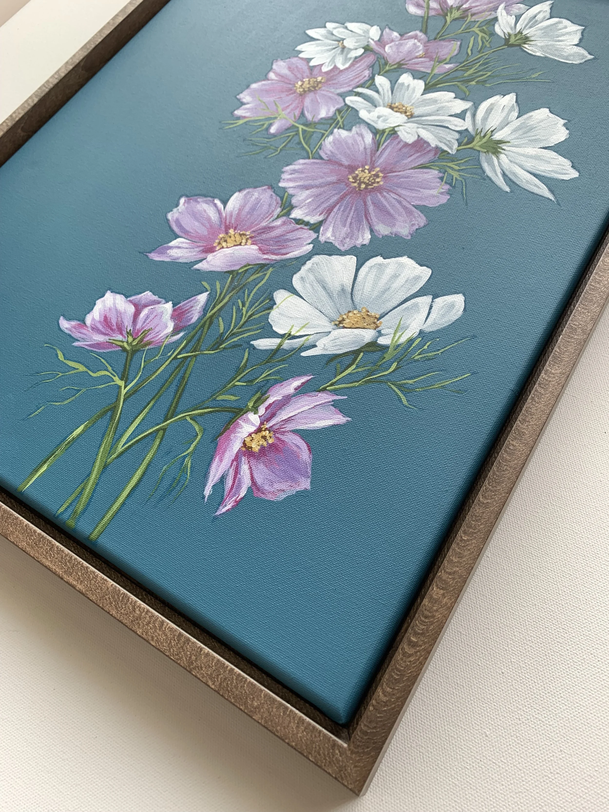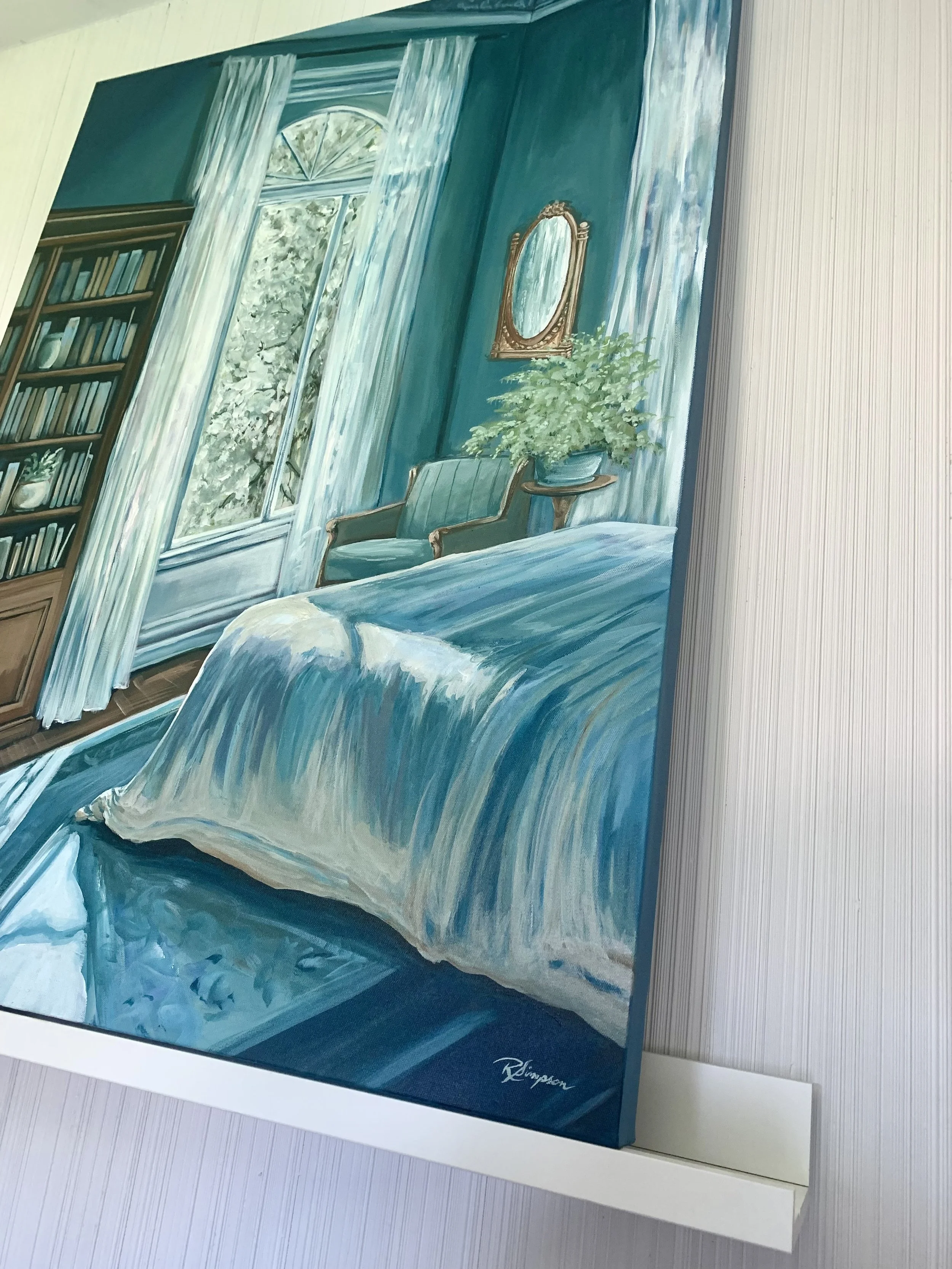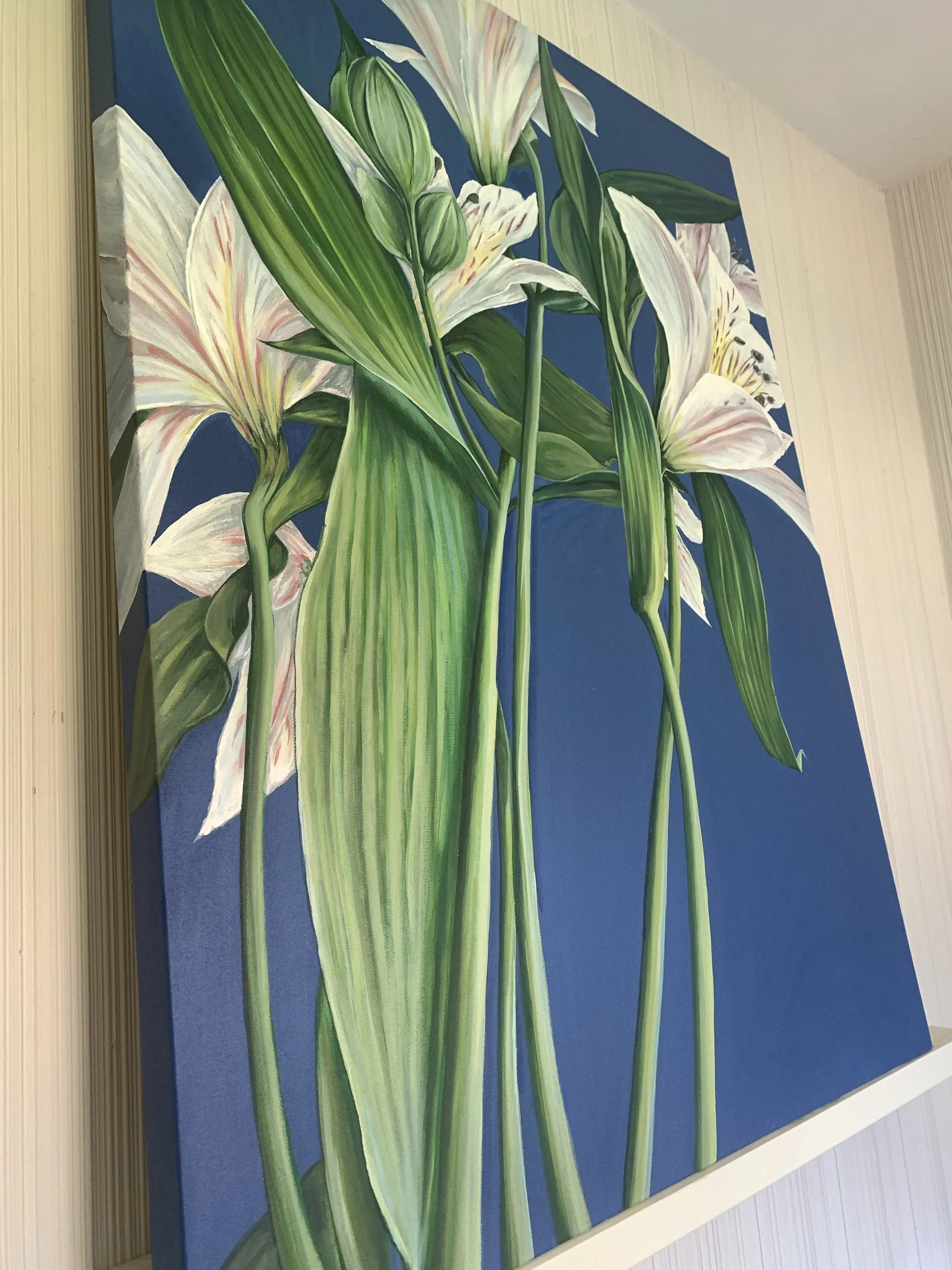 This collection reflects a stillness in solace, admiring what is around me at the time and tying the elements together to make something beautiful- elegant- rich in colour. These paintings evoke emotion, drawing you in and then enveloping you with it’s decisive arms of comfort.
